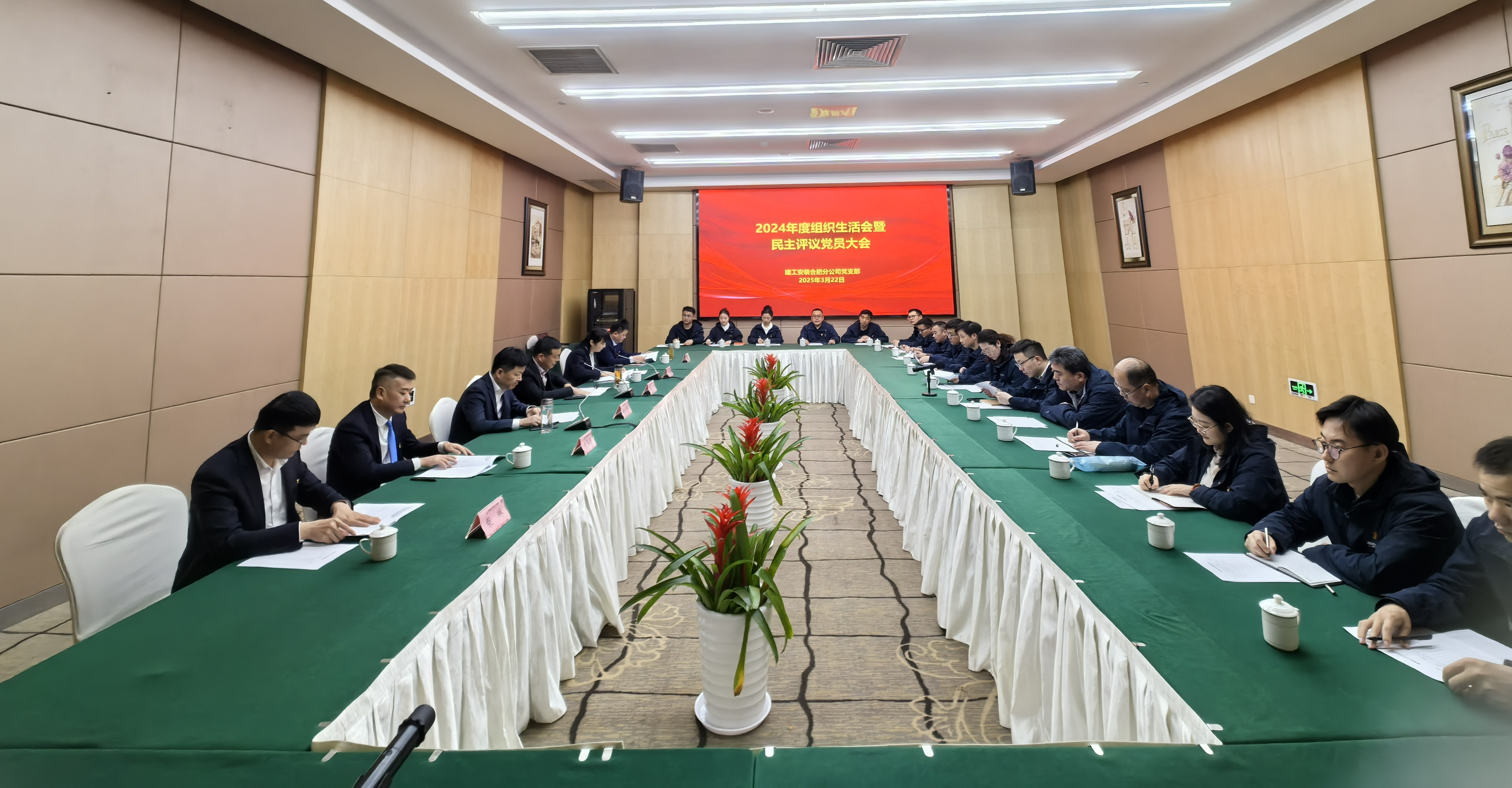 3月22日下午,建工安裝合肥分公司黨支部召開2024年度組織生活會暨民主評議黨員大會。公司黨委委員、財務總監李雷應邀到會指導并作點評講話。分公司黨支部副書記王敏主持會議,支部全體黨員參加會議。