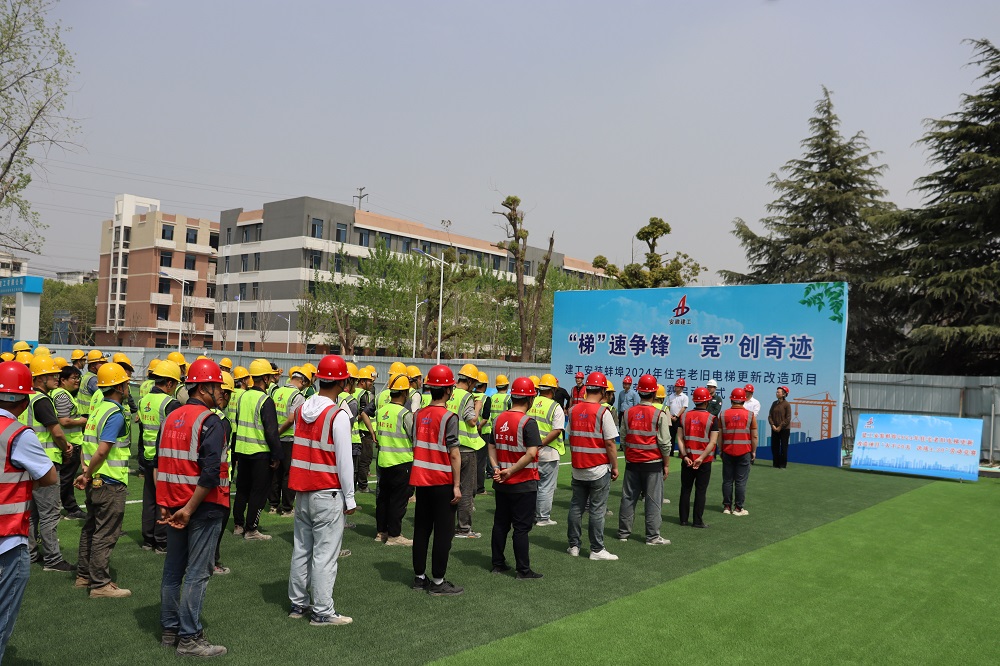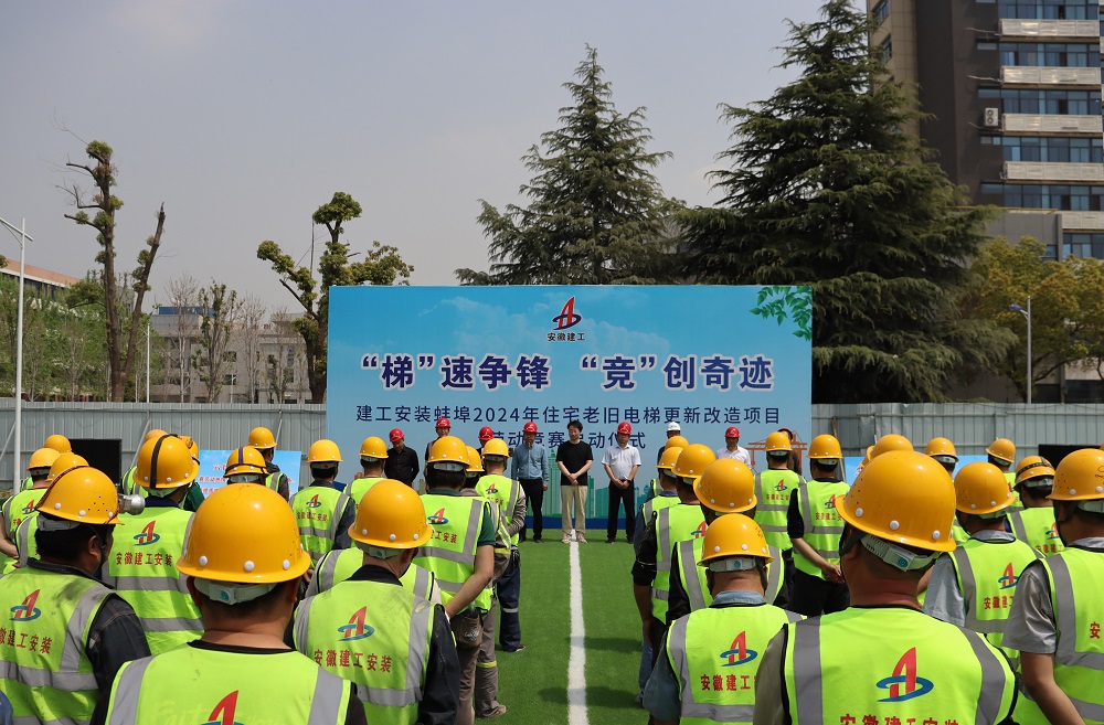 為貫徹集團(tuán)和公司兩級職代會(huì)精神,落實(shí)公司勞動(dòng)競賽活動(dòng)相關(guān)工作要求,加快工程建設(shè)進(jìn)度,不斷提高項(xiàng)目管理和建設(shè)水平,4月10日,建工安裝電梯分公司蚌埠2024年住宅老舊電梯更新改造項(xiàng)目舉行了以“梯”速爭鋒 “競”創(chuàng)奇跡為主題的勞動(dòng)競賽啟動(dòng)儀式,正式吹響了“大干20天,決戰(zhàn)4.30”勞動(dòng)競賽的奮進(jìn)號角。蚌埠市城市投資控股有限公司代表、分公司班子成員、項(xiàng)目部管理人員、各參建單位代表及作業(yè)人員共130余人參加活動(dòng)。
