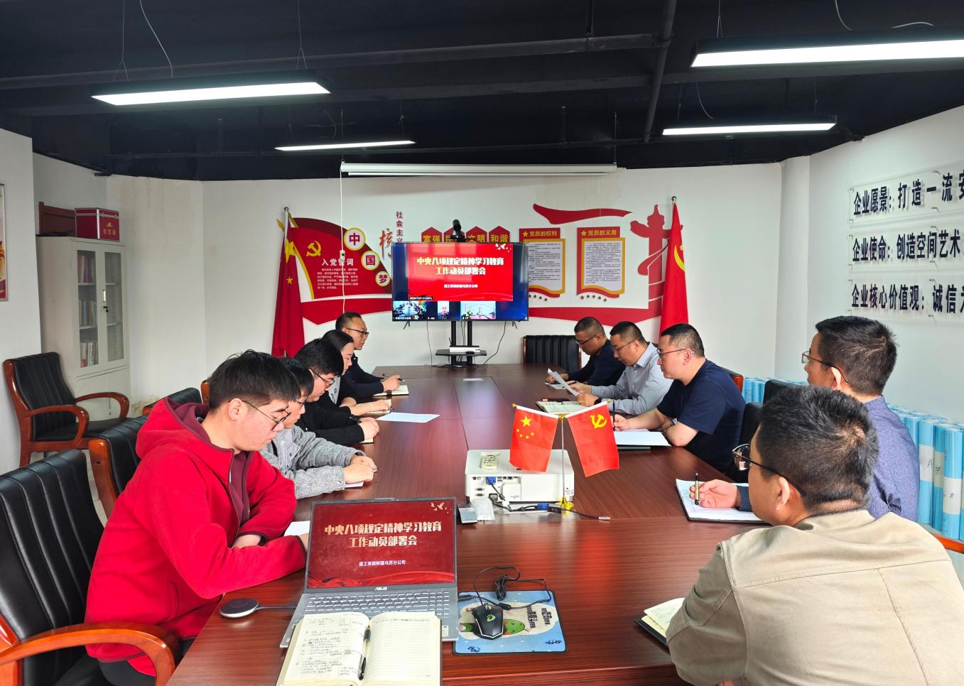 4月14日,建工新疆烏蘇分公司召開深入貫徹中央八項規(guī)定精神學習教育工作動員部署會,會議由黨支部書記、經(jīng)理李磊主持,采用線下+線上視頻連線的方式召開,分公司領(lǐng)導(dǎo)班子、支部黨員、機關(guān)員工參加會議。