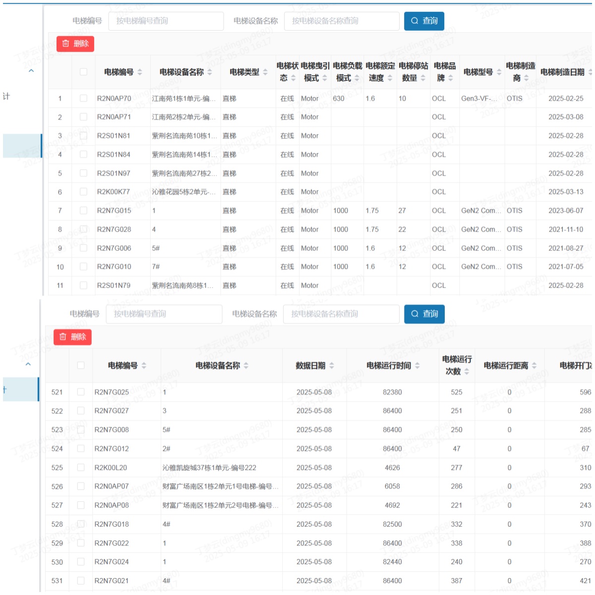 新搭建的電梯管理模塊構建起高效的數據互通橋梁,不僅能夠實時獲取已上線電梯編號、電梯設備名稱等各項基礎數據,還能精準監測電梯運行時間、運行距離、運行次數、開門次數等動態數據信息。該系統可全程追蹤電梯召修記錄,詳細記錄召修維保上報時間、電梯維保人員到場時間,以及電梯故障處理過程、因故障困人后的解救時間等信息。這些數據的全面整合與實時呈現,能夠全方位、立體化掌握每臺電梯的運行狀態及故障率,增強了電梯運行的安全性和可靠性,有效提升電梯維保效率。