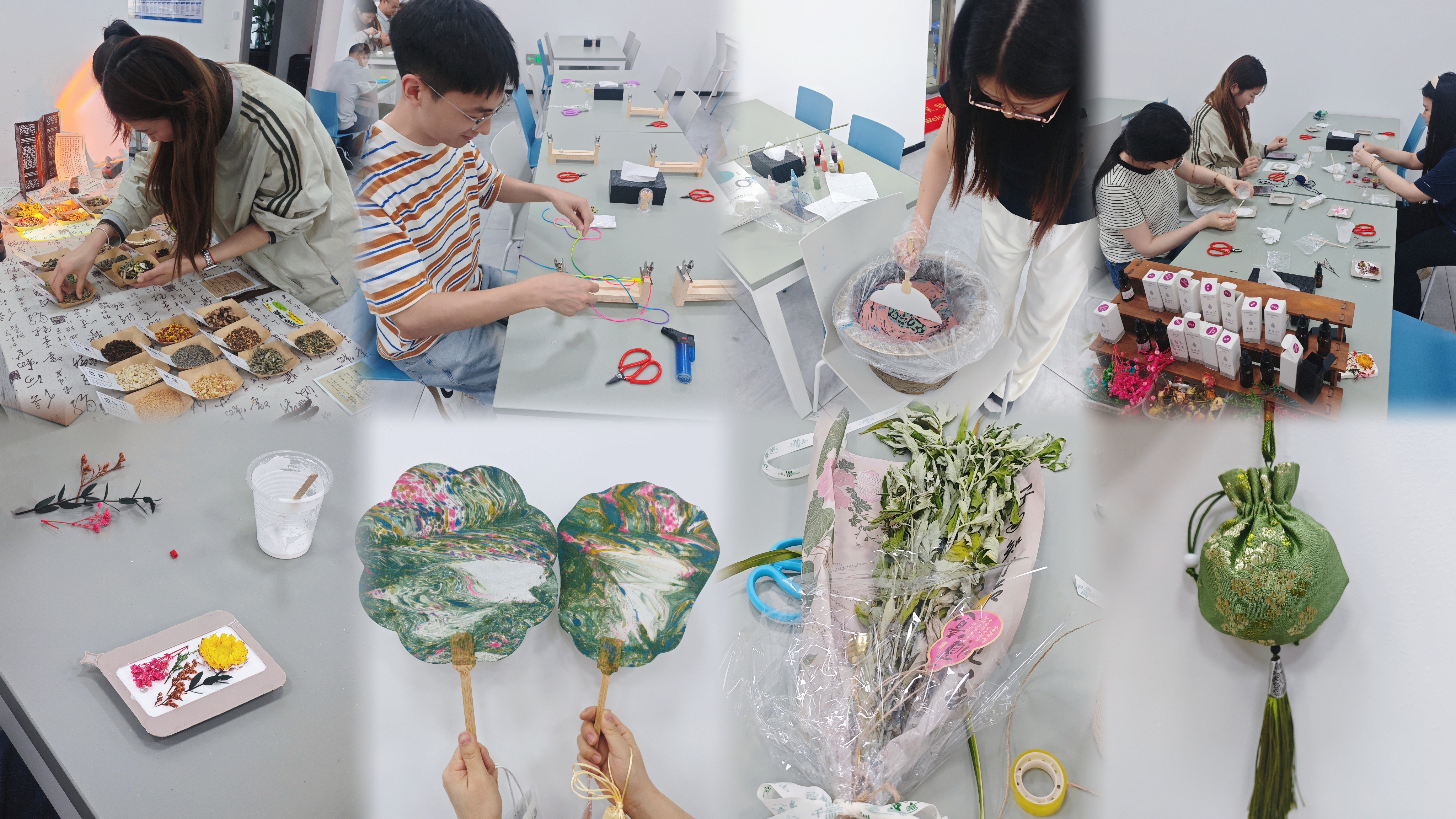 活動現(xiàn)場,五彩繩、香囊、艾草花束、漆扇、香牌等豐富多樣的手工項目精彩紛呈,吸引了眾多職工熱情參與。大家相互交流與合作,親手制作獨(dú)具特色的端午手工藝品,感受著傳統(tǒng)文化的深厚底蘊(yùn)。