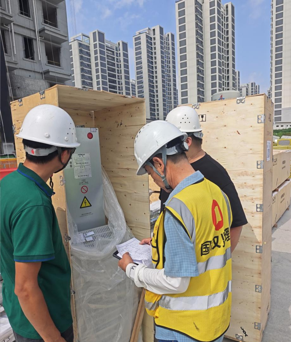 長豐縣雙墩鎮(zhèn)紫桐苑項目項目管理人員正在對電梯開箱核對數(shù)據(jù)參數(shù)
