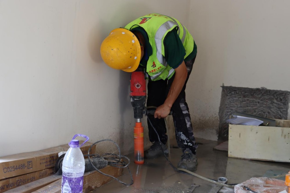 肥西縣城鄉(xiāng)一體化發(fā)展花崗項目施工人員正在對機房地面進行孔洞開鑿