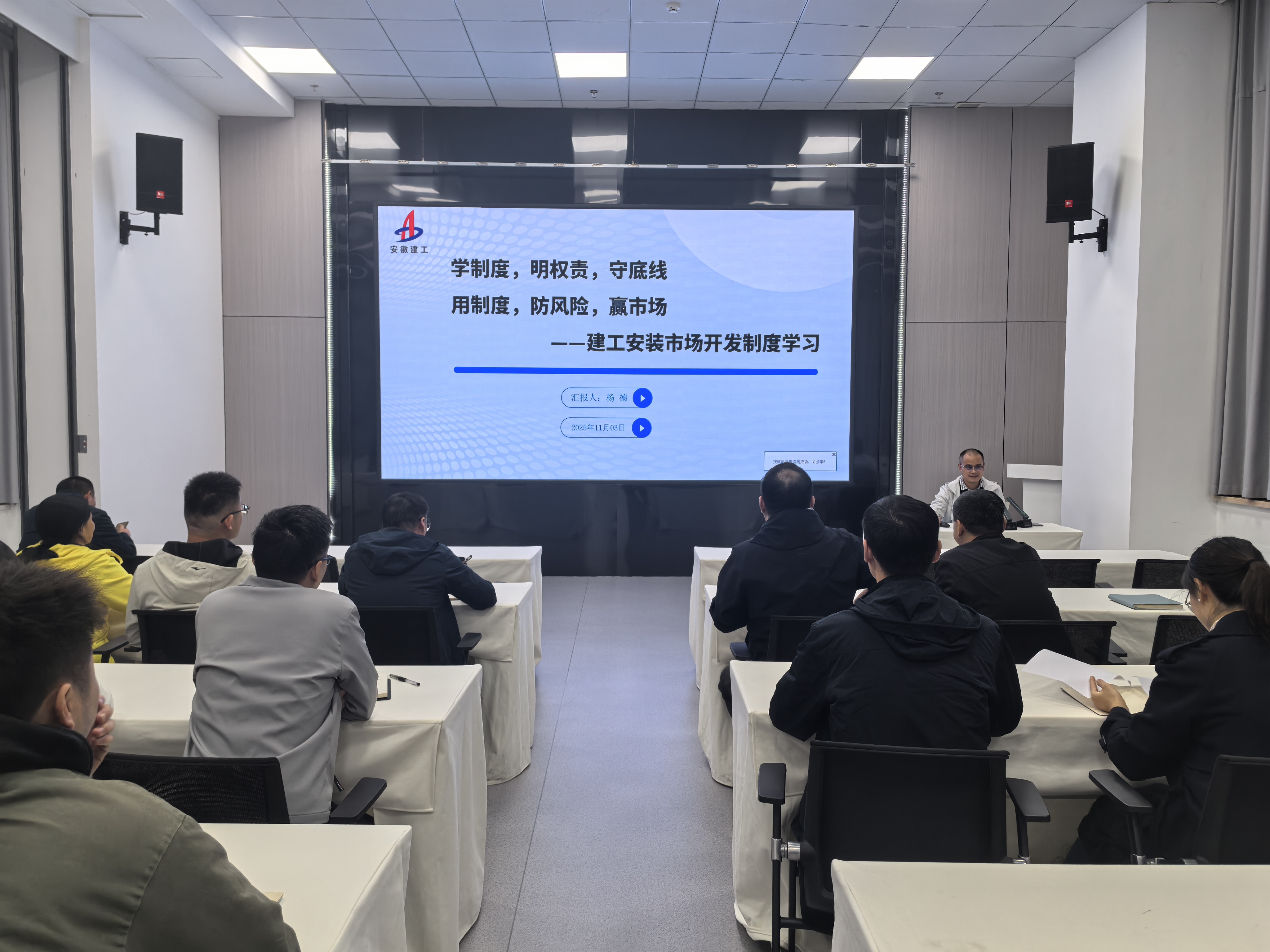 11月3日晚,建工安裝第三十二期機(jī)關(guān)部門大學(xué)堂在公司第一會(huì)議室舉行。本次培訓(xùn)由市場開發(fā)和投資部楊德主講,機(jī)關(guān)全體職工參會(huì)。
