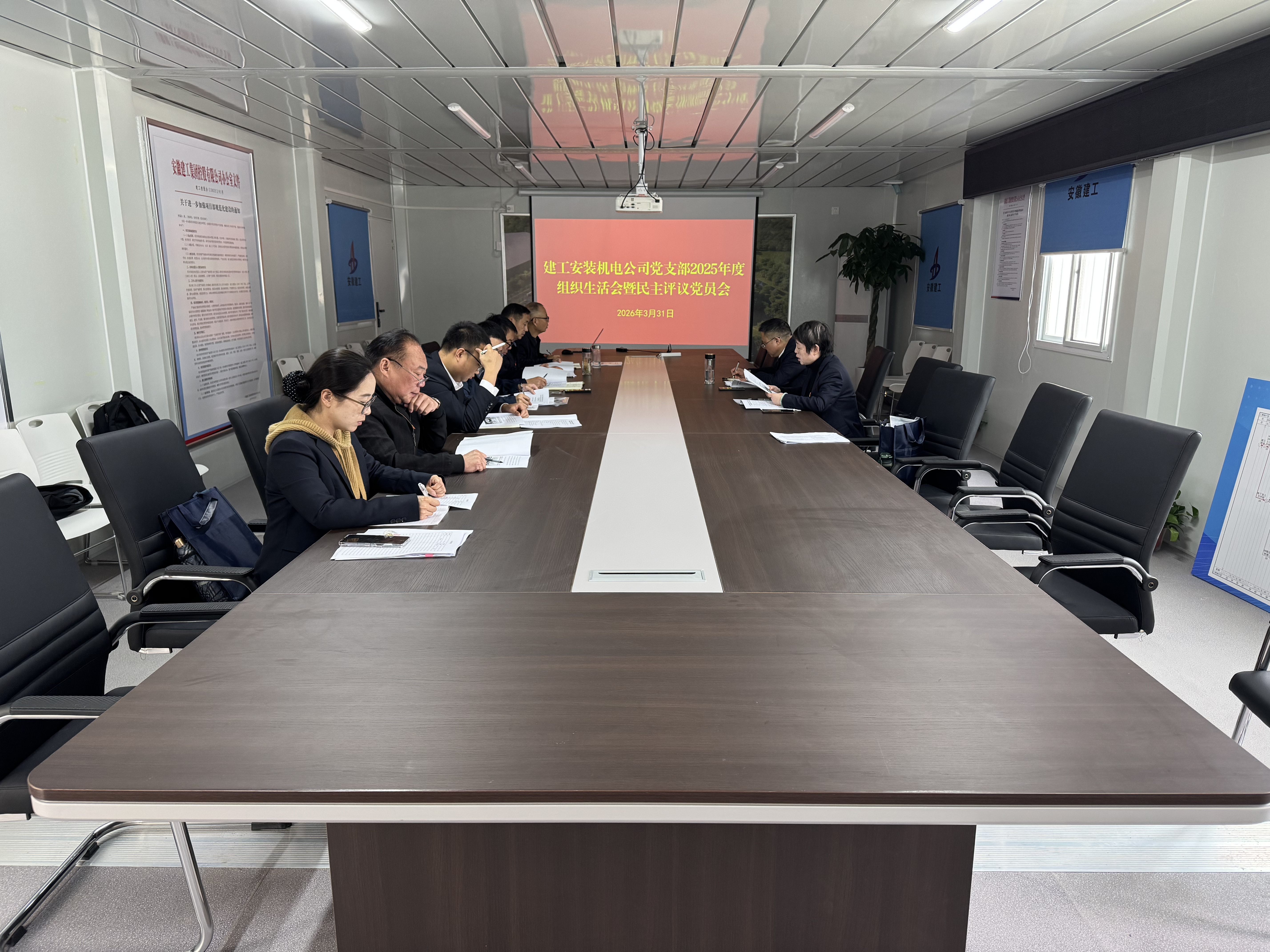 3月31日下午,建工安裝機電公司黨支部在滁州歡歌笑語康養社區項目部召開2025年度組織生活會暨民主評議黨員會。班子成員及部分黨員代表參加會議。機電公司黨支部書記、經理趙銘亮主持會議。